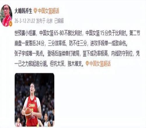 我们不是没有天赋,只是缺了系统。张子宇的2米26,是希望;但若没有能把她“喂饱”的后场,这“移动长城”,终将成孤峰。