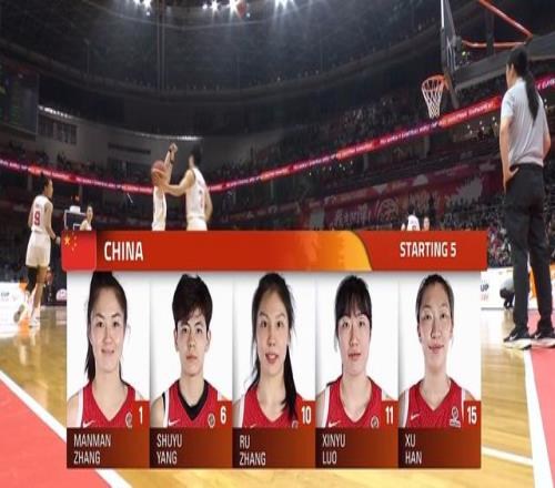 进入到第四节:中国队换上双塔组合:张子宇打5号位,韩旭4号位,罗欣棫3号位,杨舒予和王佳琦打后卫。——张子宇、韩旭二人连续拿分:中国队持续保持冲击力。