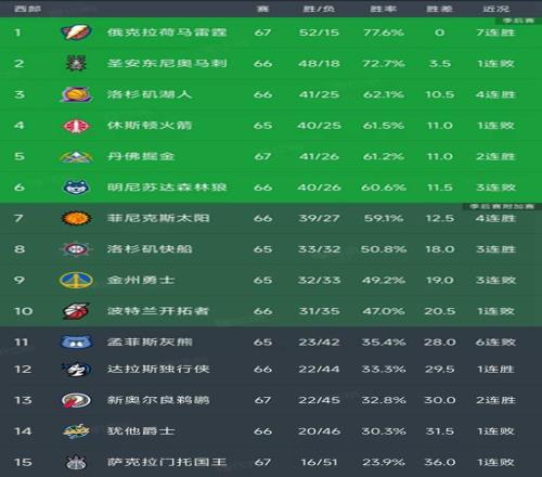 北京时间3月13日,这个比赛日的NBA常规赛又结束了所有比赛,我们看看西部最新的排名,主要的信息是:雷霆104-102险胜凯尔特人,马刺131-136不敌掘金,湖人142-130战胜公牛,太阳123-108战胜步行者,独行侠120-112战胜灰熊!