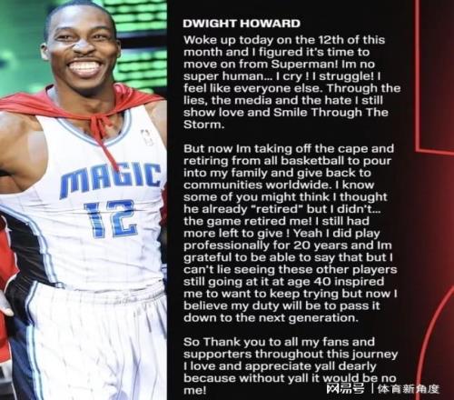 但无论如何,仅从球场表现来看,霍华德绝对称得上是一位伟大的球员。在巅峰时期,他无疑是NBA无可争议的第一中锋,也被誉为NBA历史上最后一位传统意义上的超级大中锋。如今,让我们共同祝福“魔兽”霍华德,希望他在翻开人生新篇章之后,依旧能够在新的领域发光发热,续写属于自己的辉煌。
