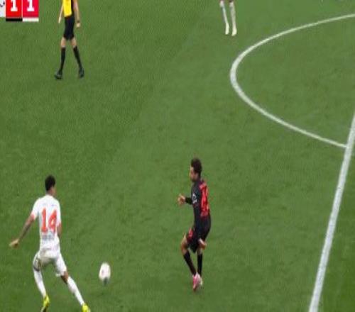 第57分钟,错失良机!蒂尔曼快速带球推进绝佳机会推射打偏