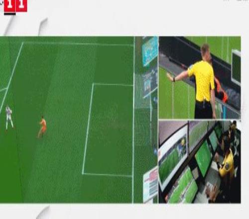 第90+7分钟,体毛级越位!半自动越位系统显示霍夫曼绝杀球就差一点