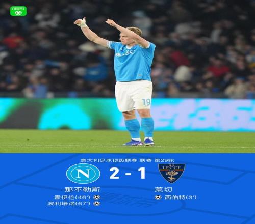 北京时间3月15日意大利足球顶级联赛第29轮,那不勒斯主场迎来莱切的挑战。比赛中,莱切球员通过配合由西伯特率先取得进球;随后那不勒斯球员波利塔诺助攻霍伊伦扳平比分;之后波利塔诺又打入一球完成反超。最终,那不勒斯以2-1的比分击败莱切。