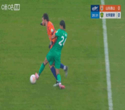 第23分钟,国安前场断球,法比奥转身射门被王大雷没收。↓
